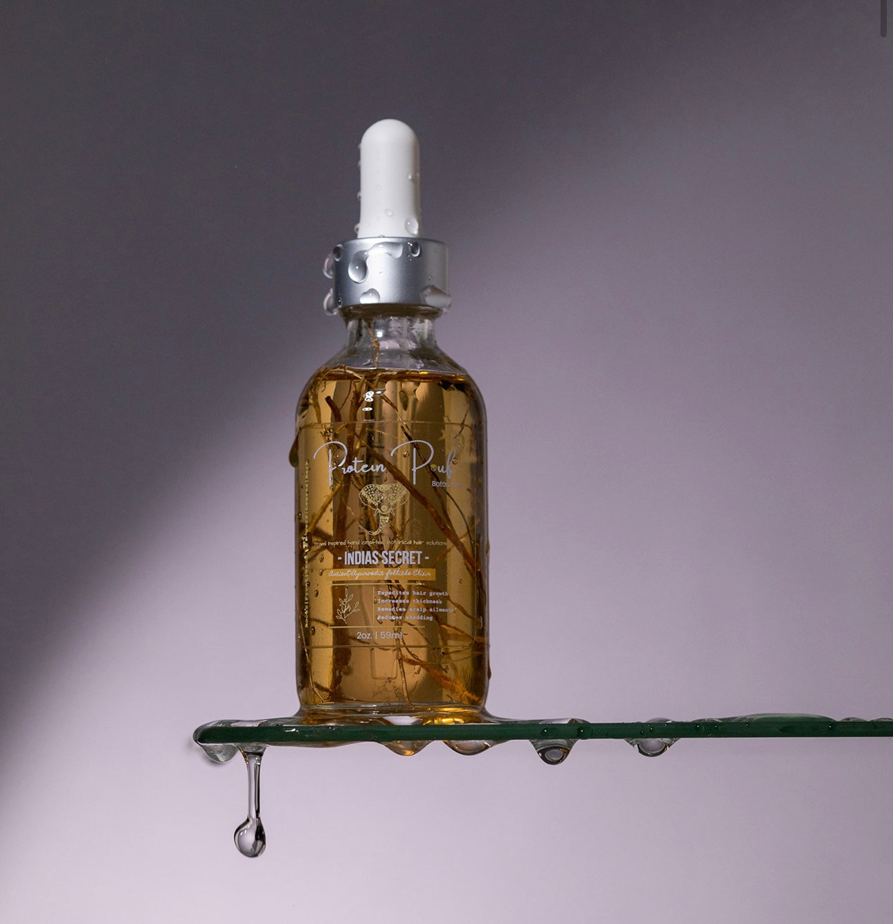 Your hair is similar to a botanical being. Just like a plant, your roots also need nutrients to grow healthy and strong. Your scalp is where the REAL growth begins, so why not address it with botanical nutrients?India’s Secret Hair Growth Oil is an intensive herbal oil with over 30 Imported organic botanical herbs (from India) and essential oils that helps stimulate the scalp whilst strengthening and conditioning thinning hair, transforming it to longer, thicker, fuller looking hair.There is absolutely NO mineral oil, no chemicals, parabens, sulfates, silicone, preservatives, artificial additives or animal testingHere’s what you should expect In just a few weeks after using our Growth Oil: