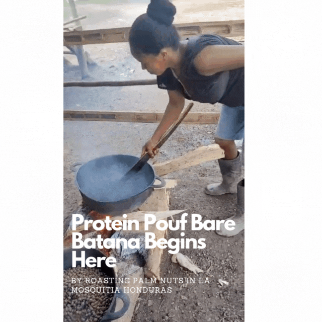Bare Batana is made deep in the small villages of La Mosquitia, where Honduran women and elders gather the fallen American palm nuts by hand. The fruit is slowly roasted, cracked open, and gently cooked over wood fires for hours until the rich, golden oil rises to the top.